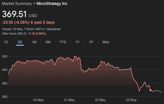 Strategy stock is still down ~6.08% over the last five days due to the lawsuit alleging securities fraud tied to its Bitcoin strategy.