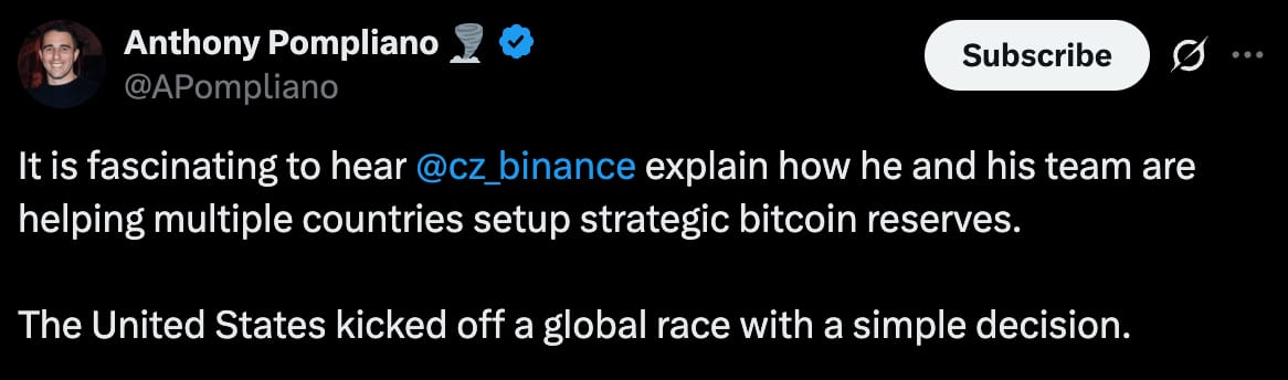 Fresh out of a four-month prison sentence, CZ is now advising governments around the world on how to build their own strategic crypto reserves.