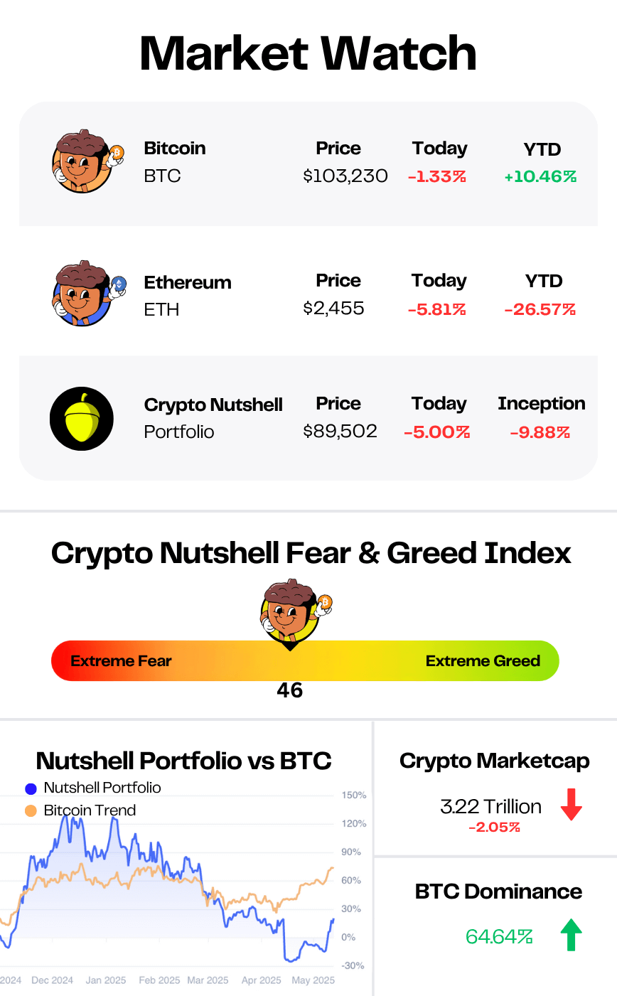 The crypto markets began to rebound with Bitcoin now sitting around $103,000 (*touch wood*).