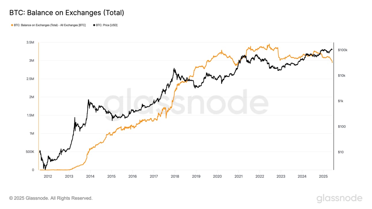 Only 2,936,183 BTC now sits on exchanges - just 14.77% of total supply.