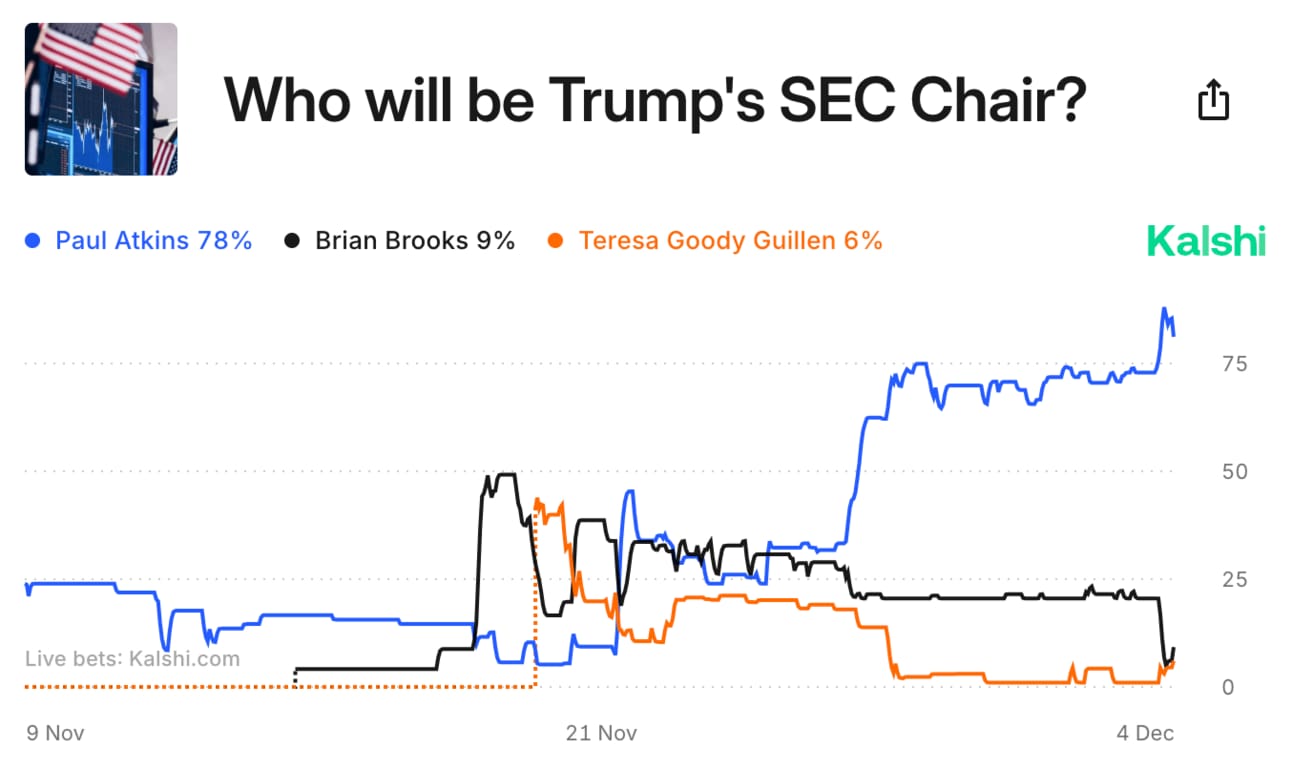 Prediction market, Kalshi, currently has Atkins at a 78% chance.