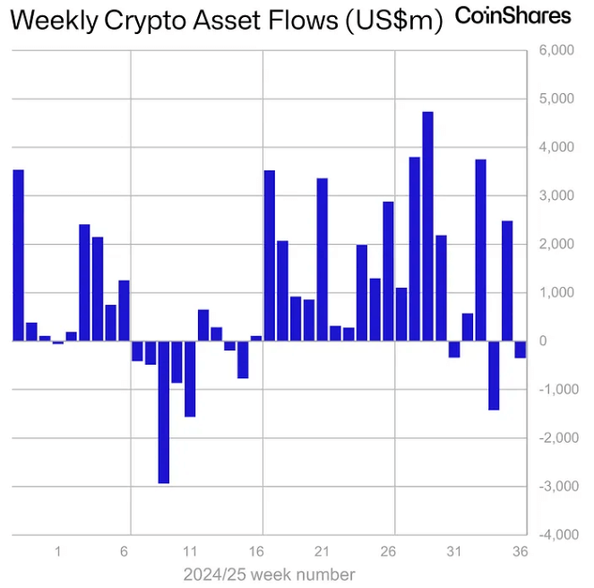 CoinShares notes that the mix of lighter flows and softer volumes points to a market briefly cooling.