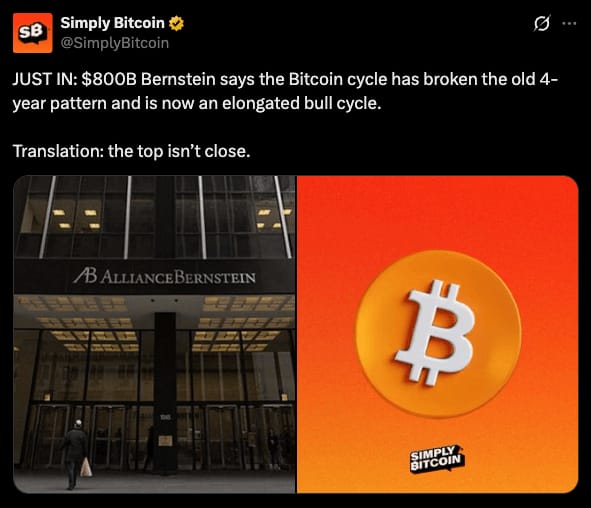In their words, Bitcoin has likely moved beyond a strict four year pattern into an extended bull cycle, with sticky institutional buying offsetting retail fear.