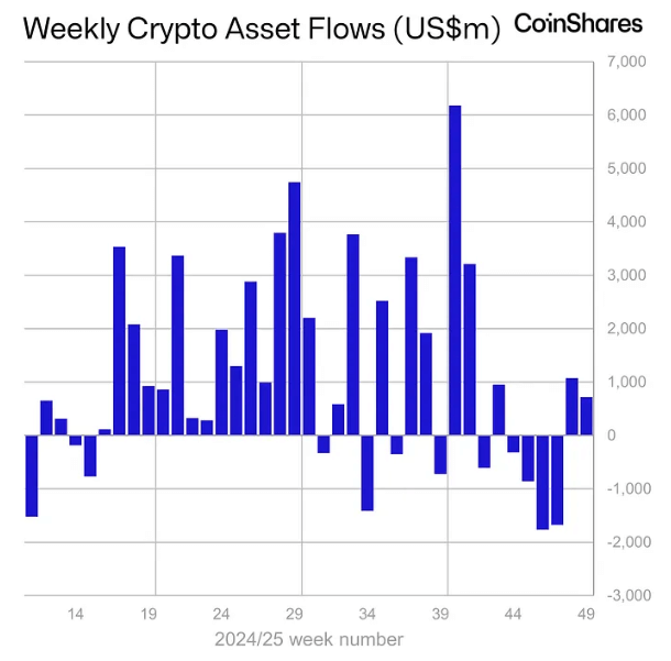 Digital asset funds saw a second week of inflows, with $716 million coming in last week.