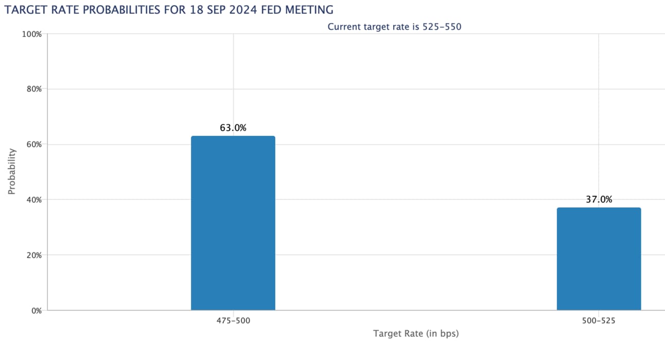 According to CME FedWatch, a 0.50% rate cut is now the most likely option, with a 63% chance.