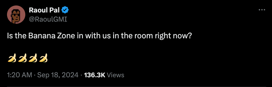 The ‘banana zone’ is the point in the crypto cycle in which global liquidity picks up, sending crypto prices parabolic.