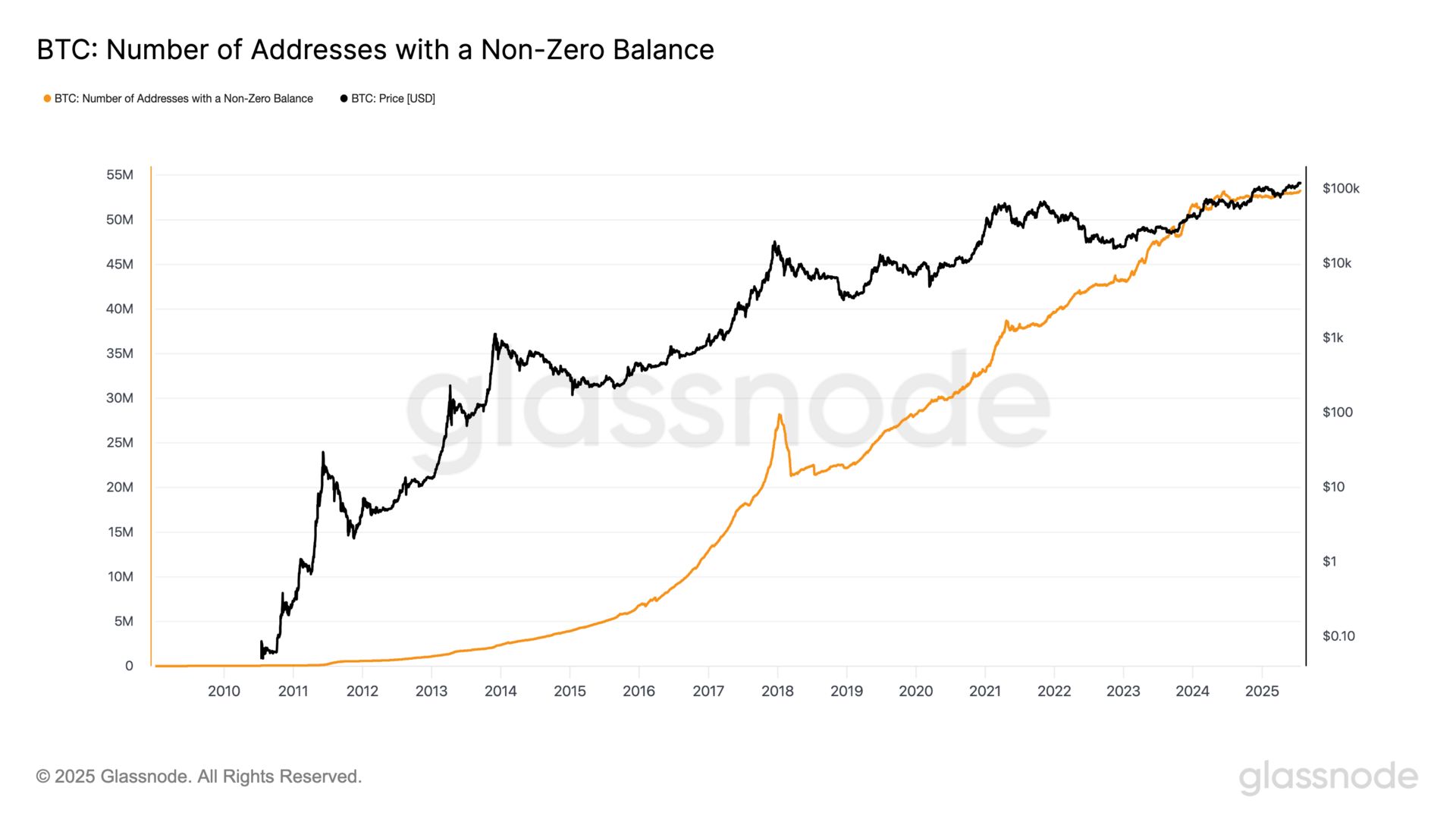 There are now 53,225,664 wallets holding some amount of Bitcoin.
