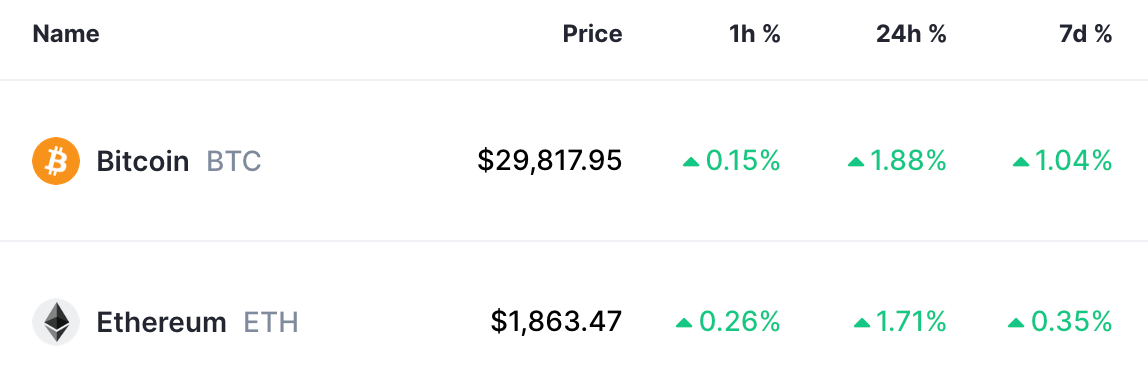 A beautiful day in the crypto world, no losers in the top 20 😄