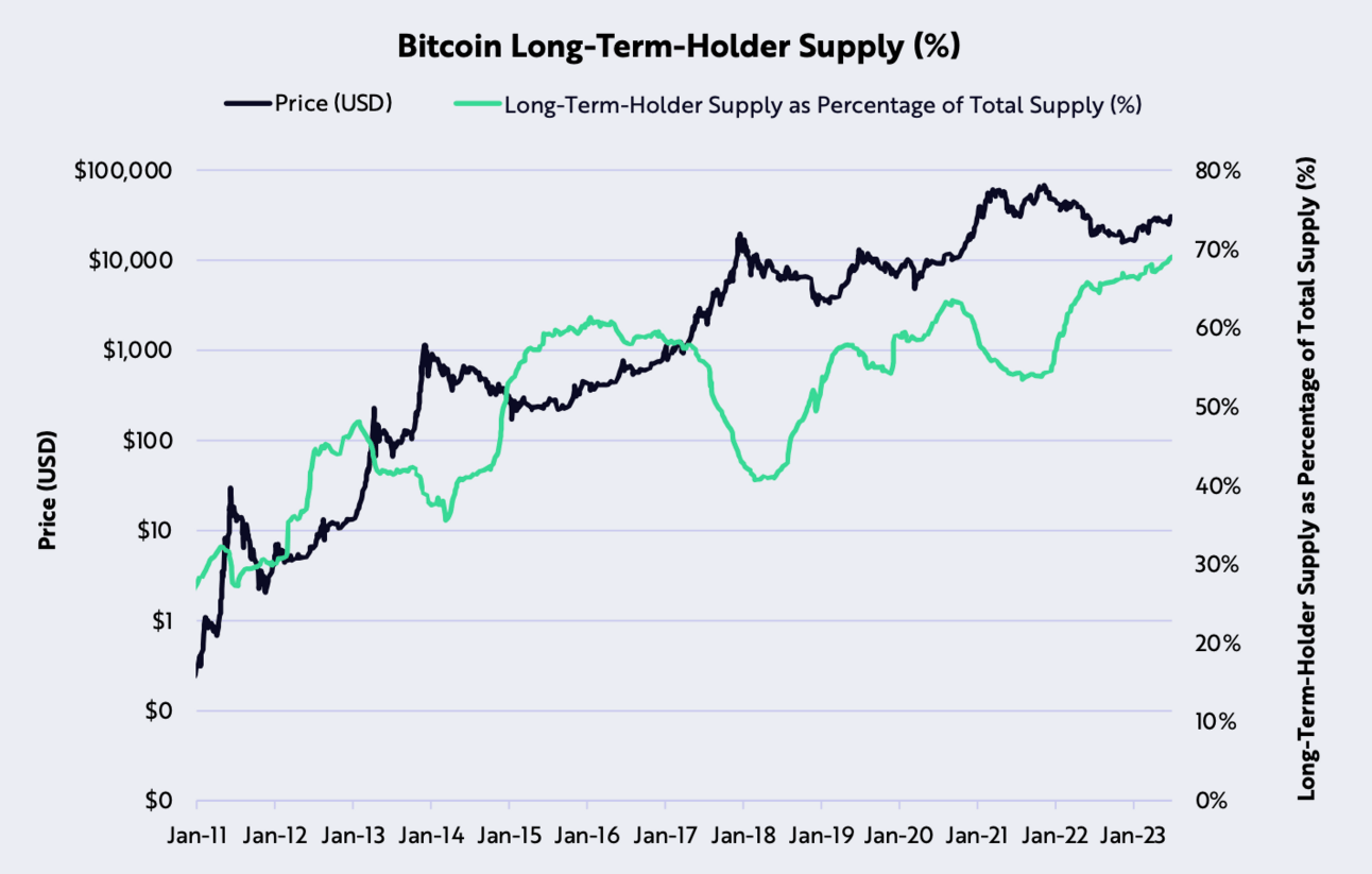 During June, the supply of bitcoin that has been unmoved for at least one year reached an all-time high, ~70% of circulating supply. ARK believes this is representative of a strengthening holder base. What other asset is backed by die-hard believers that will continue to buy & hold forever? 🤷♂️