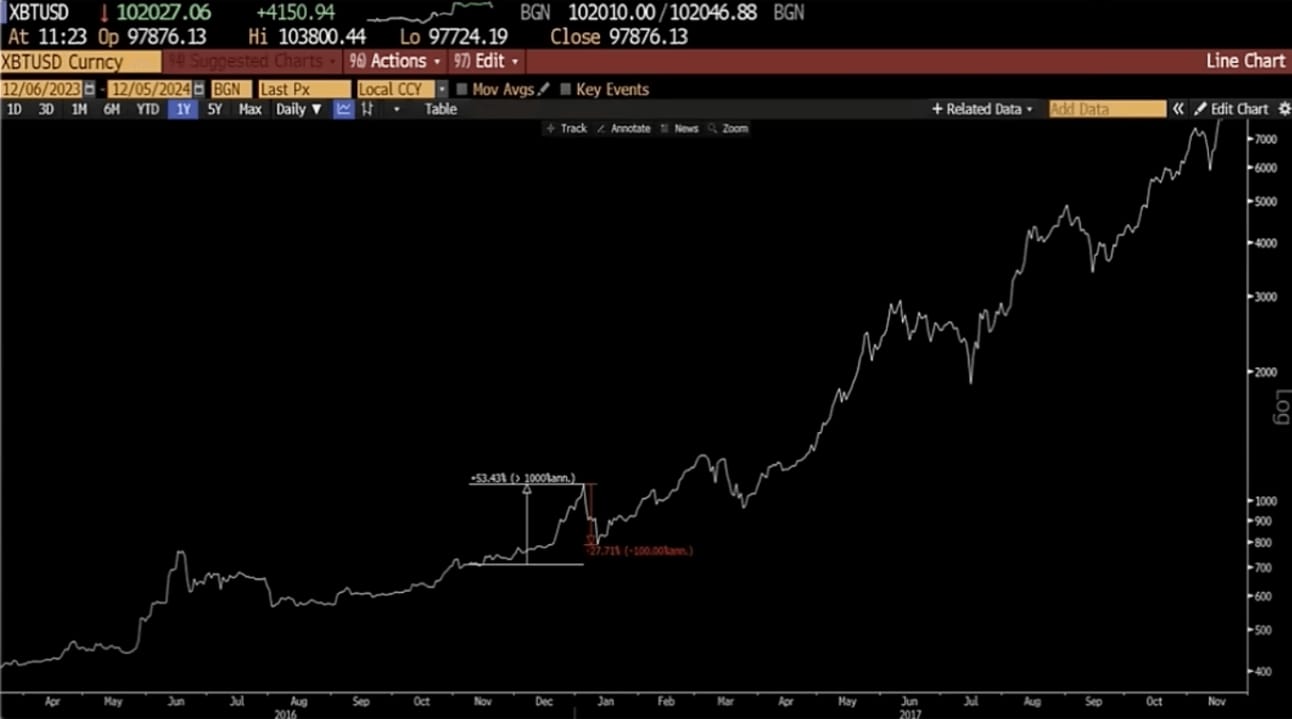 Yesterday Bitcoin briefly surpassed $100,000 before tumbling all the way back down to $96,000.
