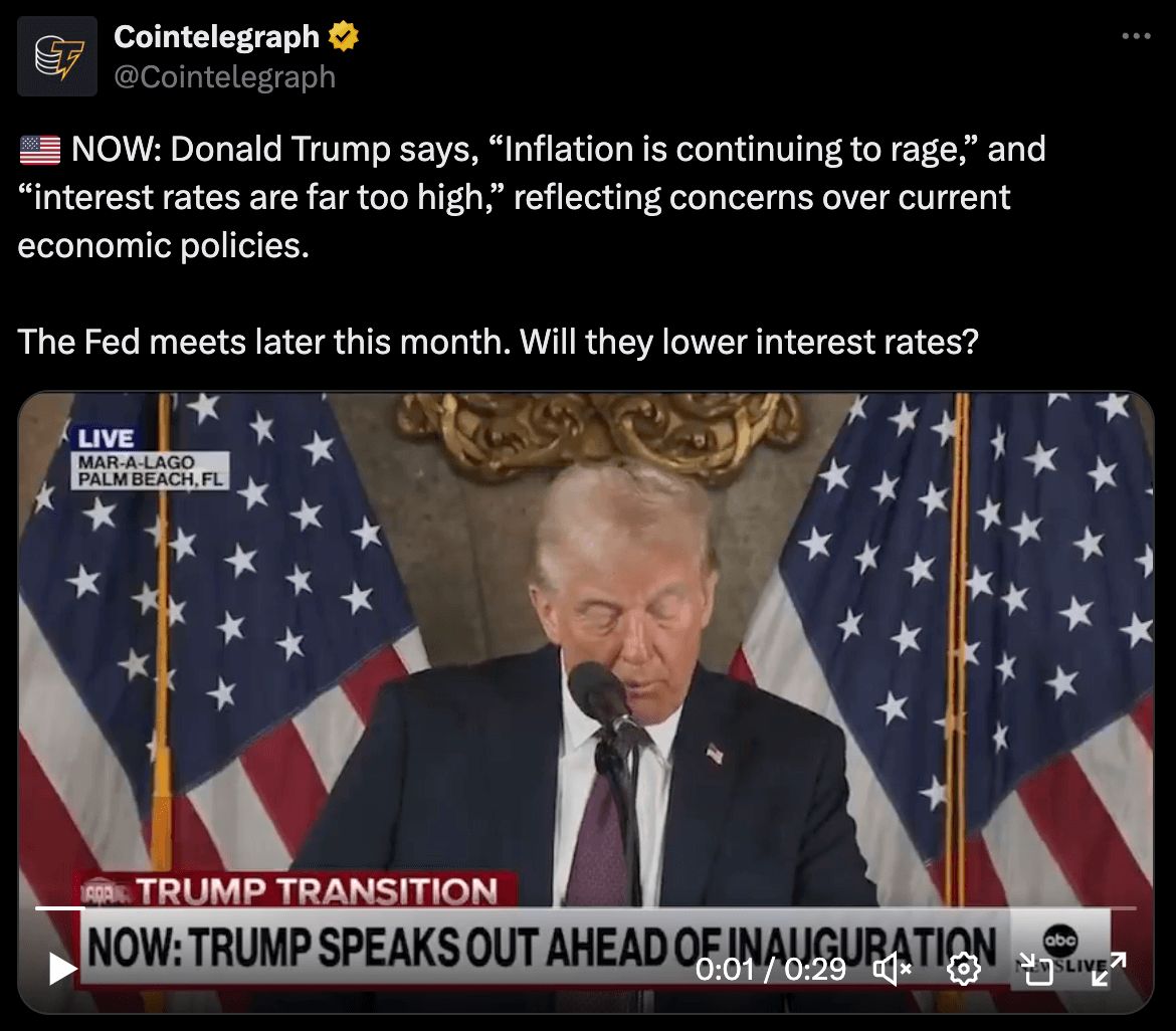 Incoming President Donald Trump just mentioned that “Interest rates are far too high”.