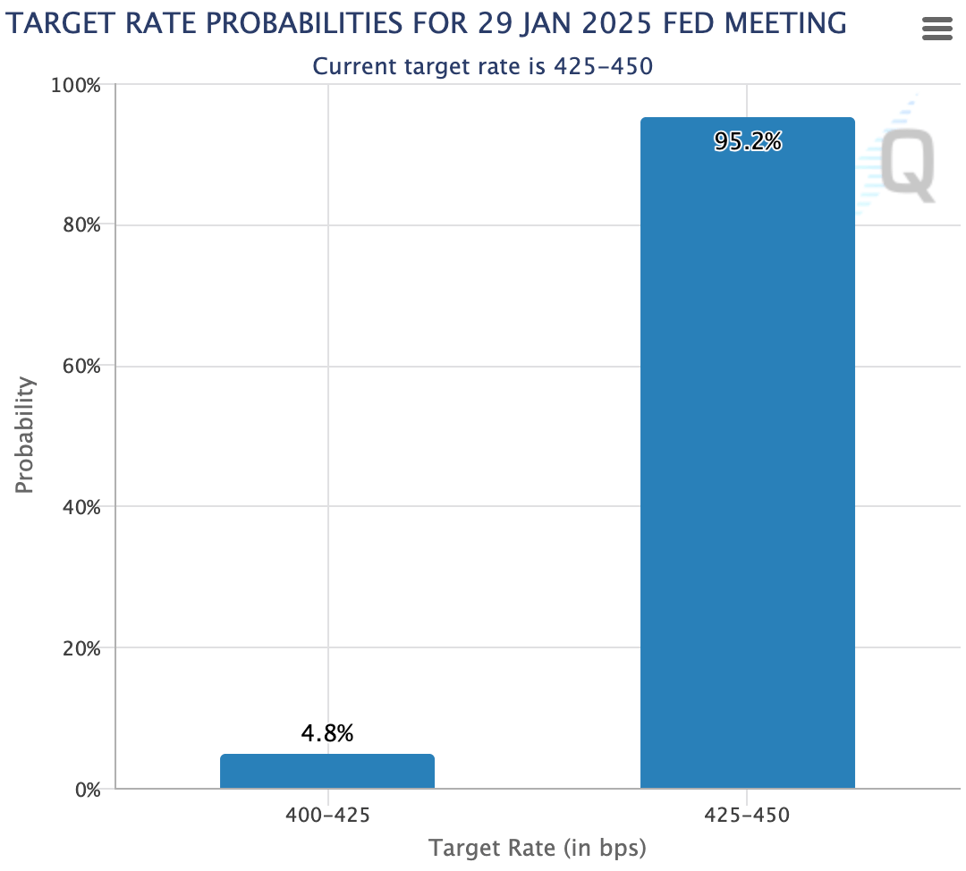 According to CME Fedwatch, theres a 4.8% chance that we see a rate cut in January.