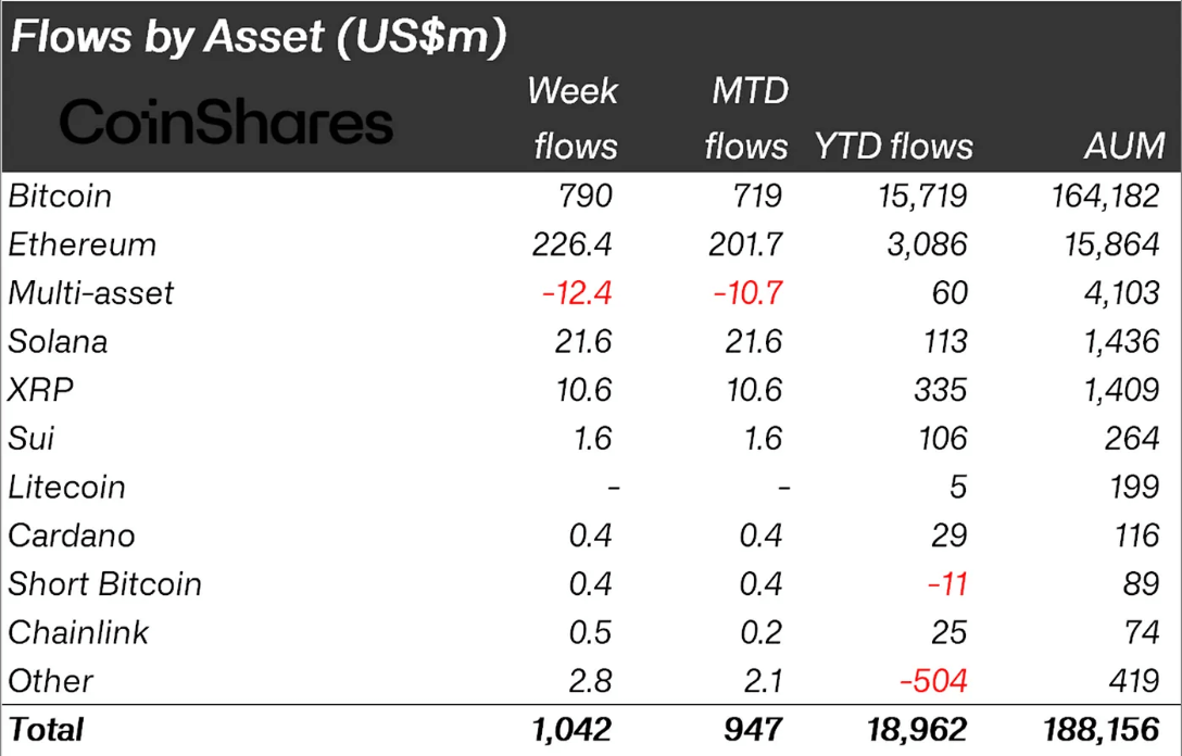 As always Bitcoin led the charge, pulling in $790 million in inflows.