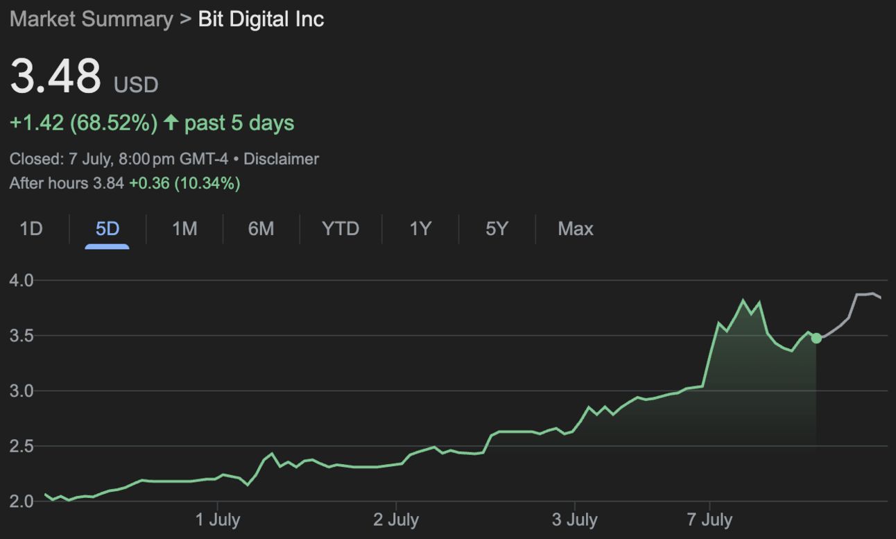 BTBT shares ripped higher, sending its market cap back above $1 billion.