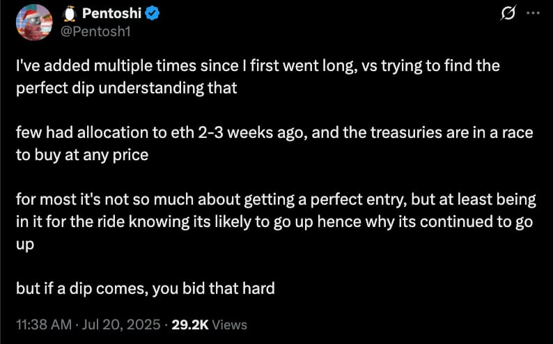 • Most people didn’t have ETH exposure a month ago - and are now panic-buying 📈