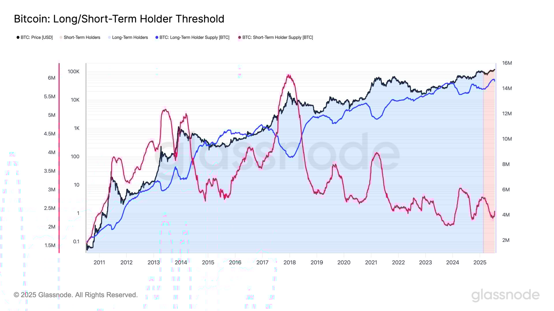 Short-term holders? Just 2.43M BTC, or 12.2%.