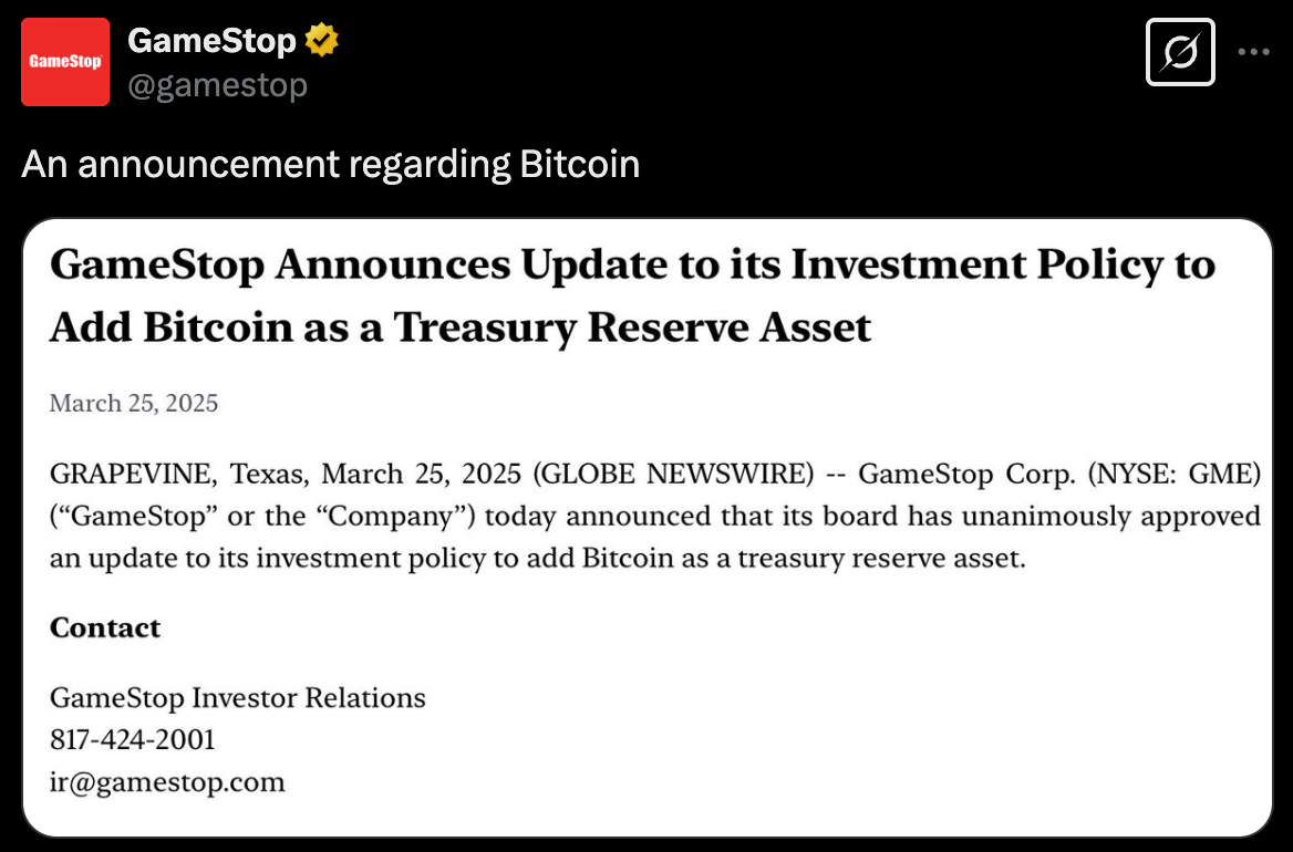 In a move that was heavily hinted at, the video game retailer has officially added Bitcoin to its treasury reserve strategy.