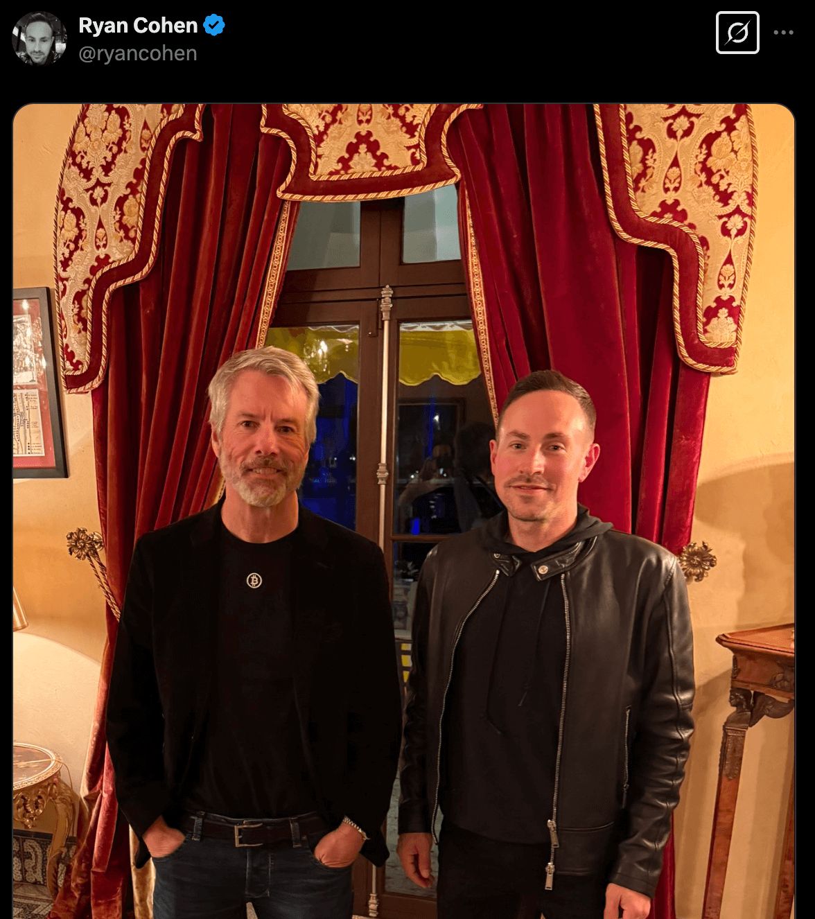 This story really started heating up back in February when GameStop CEO Ryan Cohen posted a photo of himself with Michael Saylor.