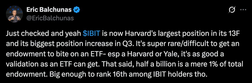 Harvard - the most prestigious endowment on the planet - made IBIT their #1 position last quarter.