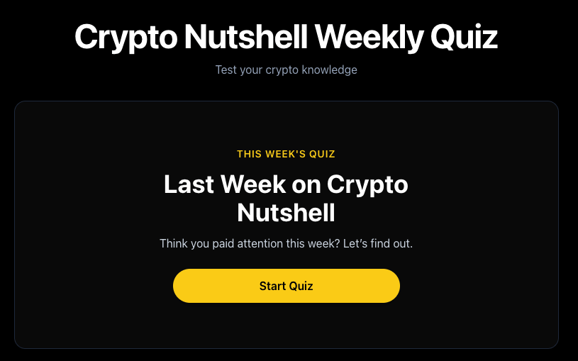 Instead of a single trivia question, you’re getting a 5 question weekly quiz pulled straight from this week’s Crypto Nutshell issues.