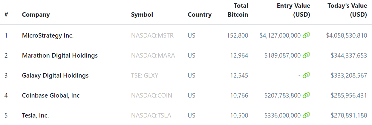 So Coinbase may be the largest holder of Bitcoin out there, but if we’re talking about how much Bitcoin companies actually own… MicroStrategy wipes the floor with everyone.