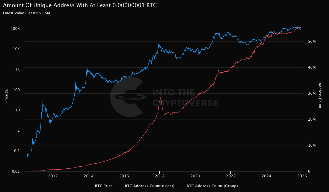 This metric offers a bird’s-eye view of user activity and adoption across the Bitcoin network.