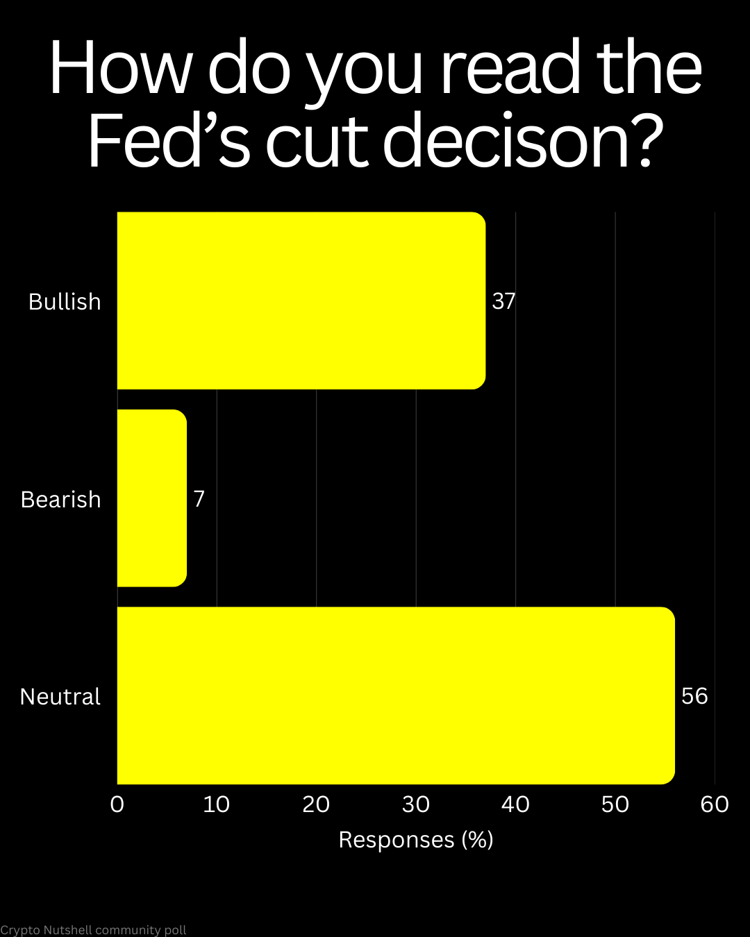 Only 37% saw the $40B in liquidity as bullish, while just 7% thought Powell's caution signals a stalling easing cycle.