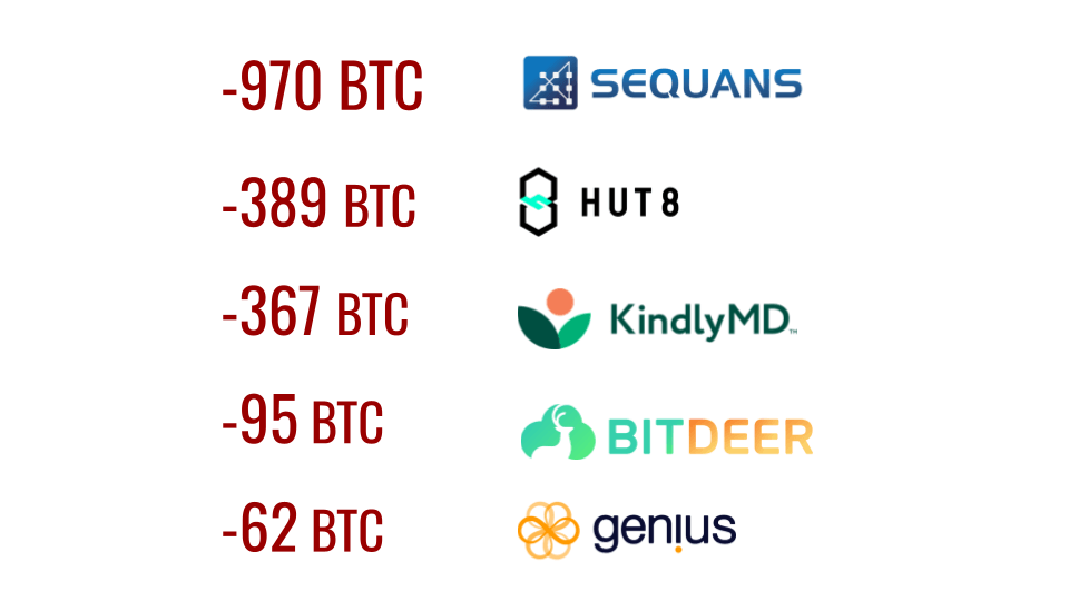 Five companies sold Bitcoin in November, including miner Hut 8 and treasury firm Sequans, which dumped roughly one-third of its holdings.