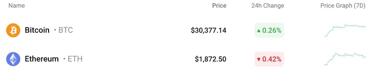 The Bitcoin roller coaster continues as it teeters on the edge of the $30,000 mark, leaving investors on the edge of their seats. Will it hold strong as support or will a fierce battle ensue? Recent charts show a brief surge above $30,000 followed by a minor retreat, giving us some insight into the past five days' price movements.