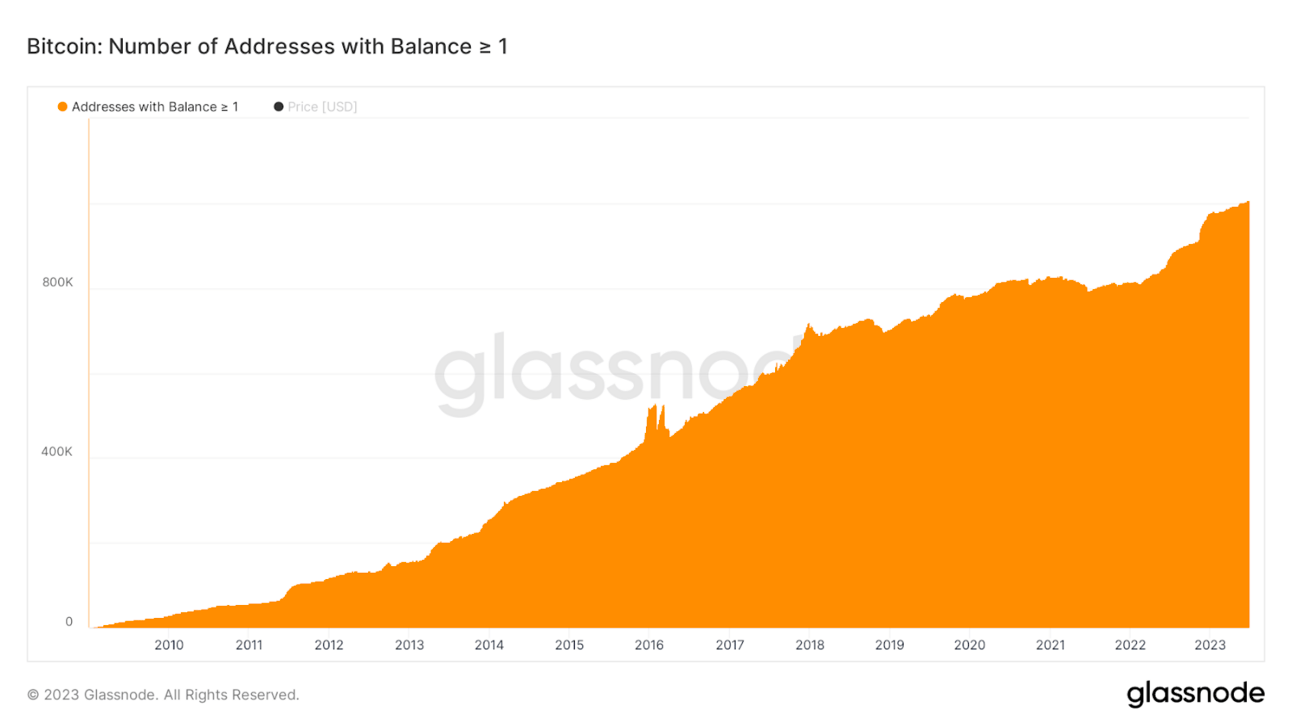 Additionally, the number of addresses holding at least 1 Bitcoin has surpassed 1 million. This milestone showcases the expanding network of Bitcoin owners and highlights the growing adoption and decentralization of the cryptocurrency. Source.