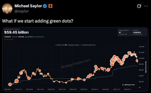 For a year, his weekend X posts have used orange dots to hint at Monday Bitcoin buys.