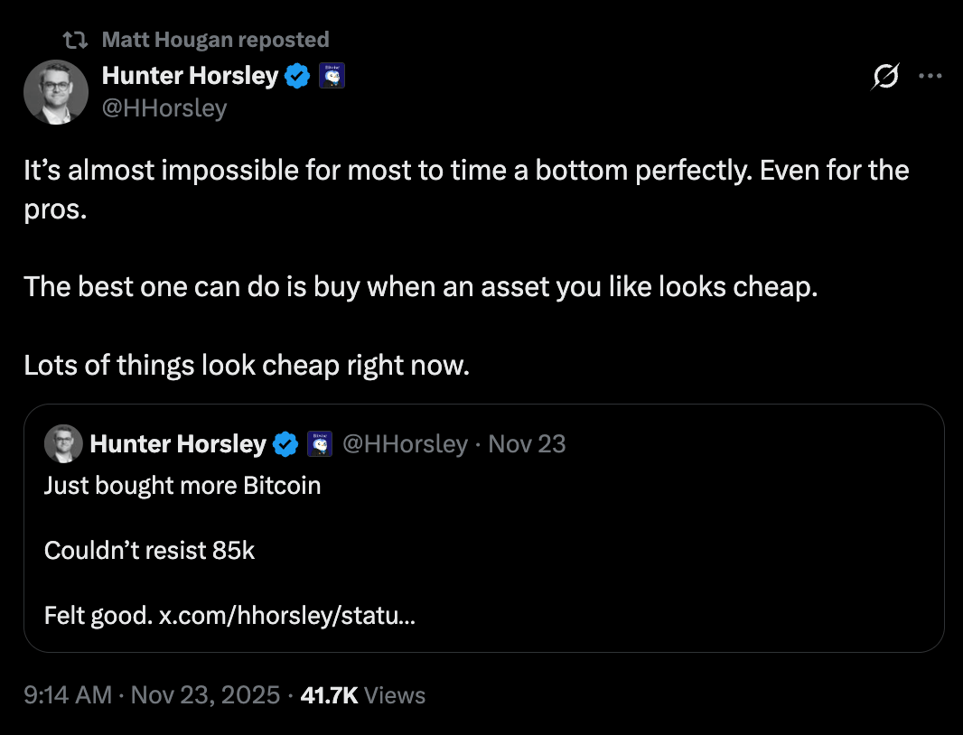 This is what Hunter Horsley, CEO of Bitwise, posted into the chaos: