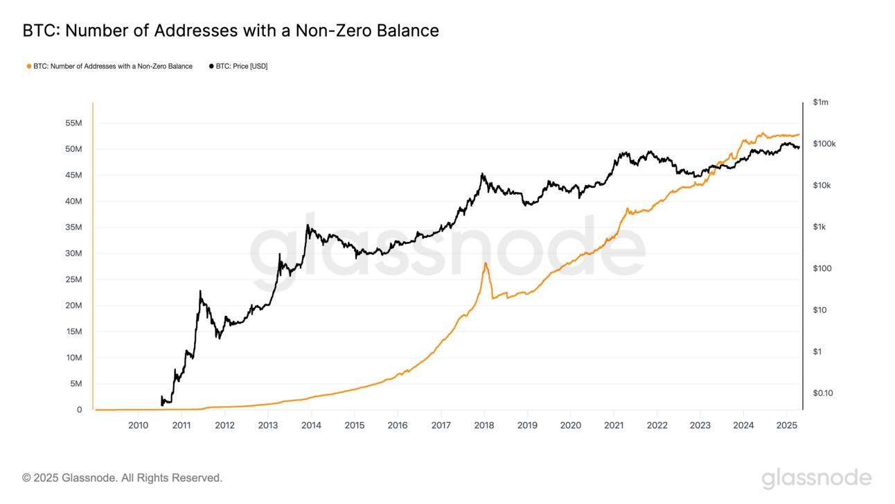 Even through price chop and macro fear, Bitcoin adoption keeps ticking higher.