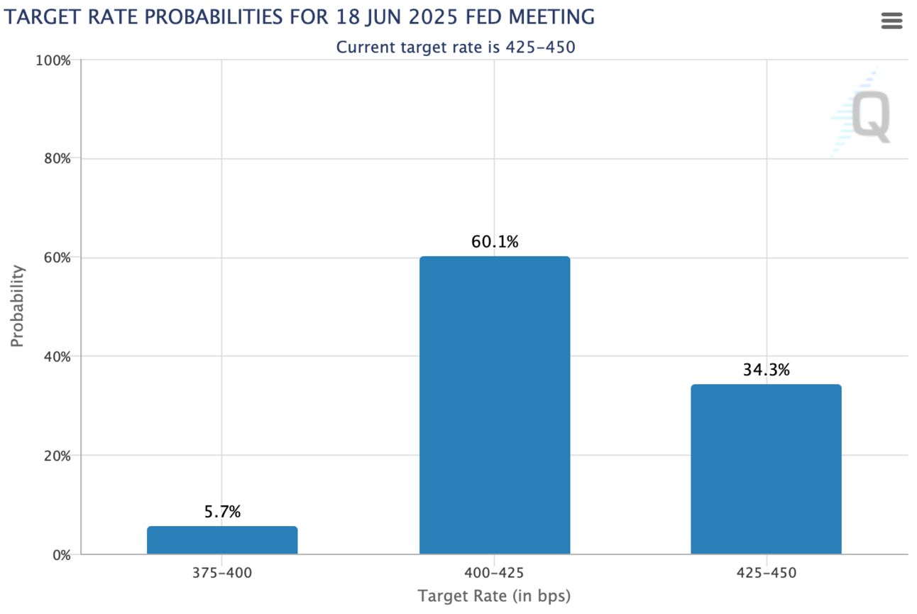 CME FedWatch now sees a 60.1% chance of a rate cut at the June 18 meeting.
