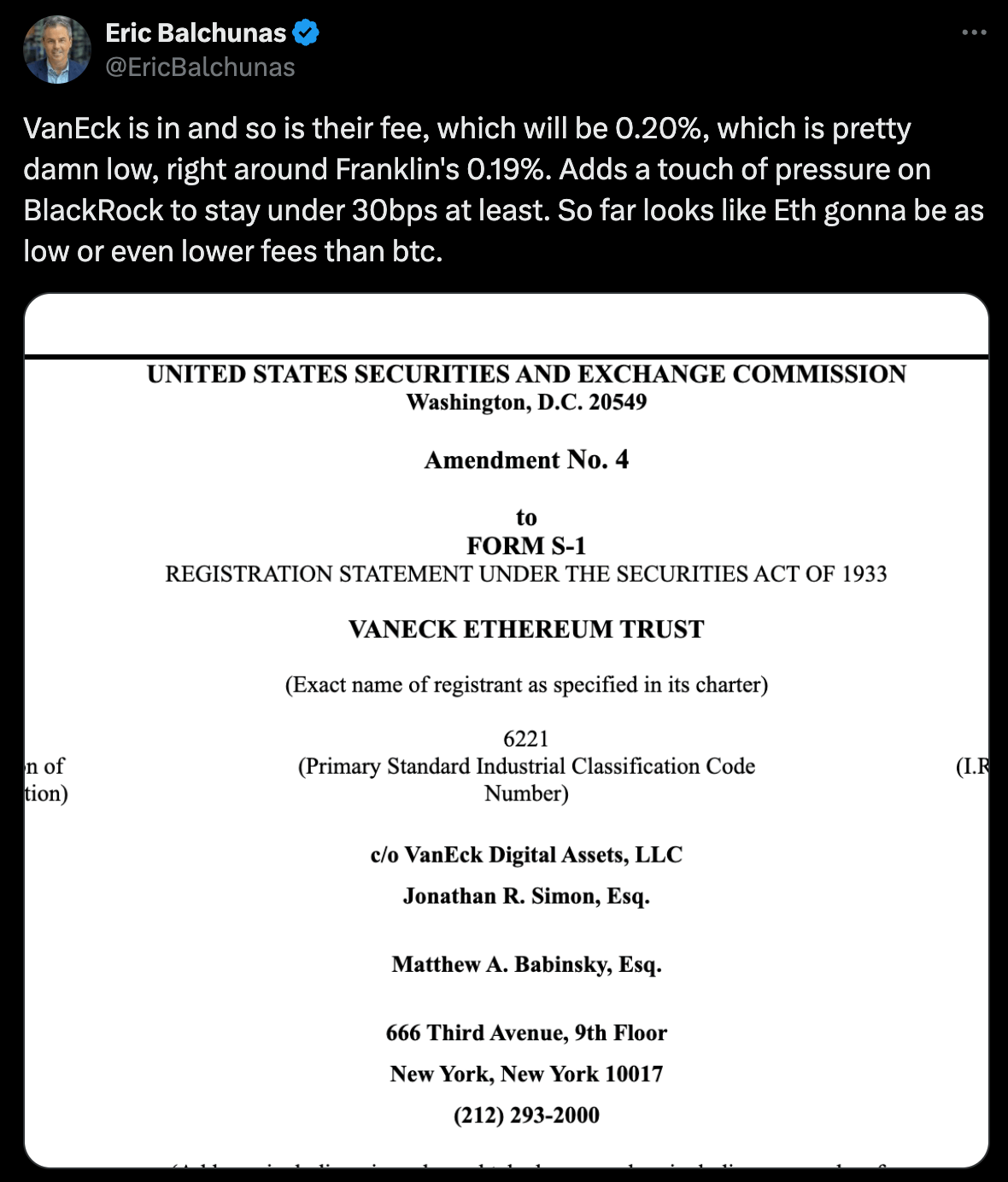 The biggest thing to come out of these S-1 filings were the fees for VanEck and Franklin Templeton being revealed.