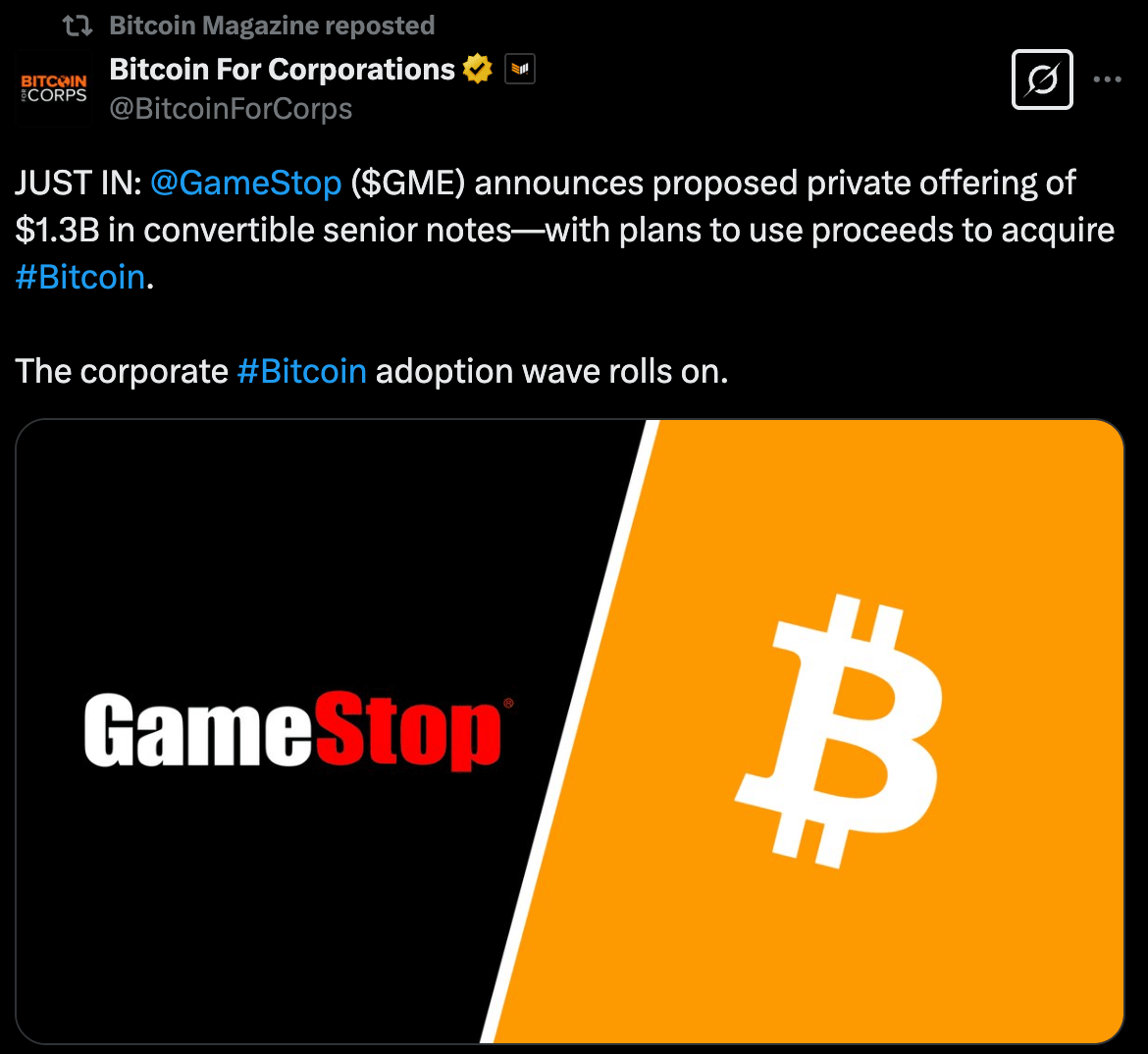 BREAKING: GameStop Raising $1.3B Via Convertible Debt to Buy Bitcoin