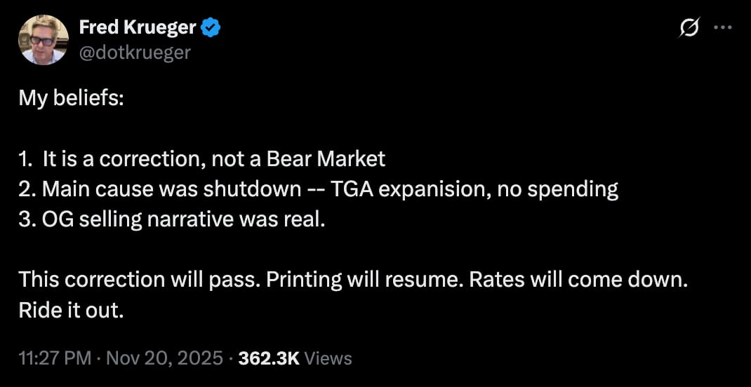 This week, Mathematician Fred Krueger - founder, quant, entrepreneur, and one of the sharpest probability-based thinkers in crypto - weighed in on this week’s chaos.