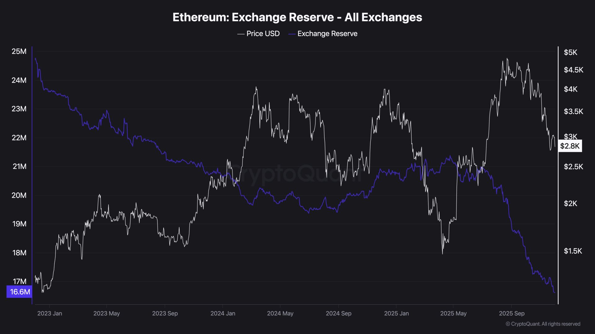 This is what a supply squeeze looks like before the market wakes up. Even with ETH selling off alongside the rest of crypto, exchange balances are still not climbing.