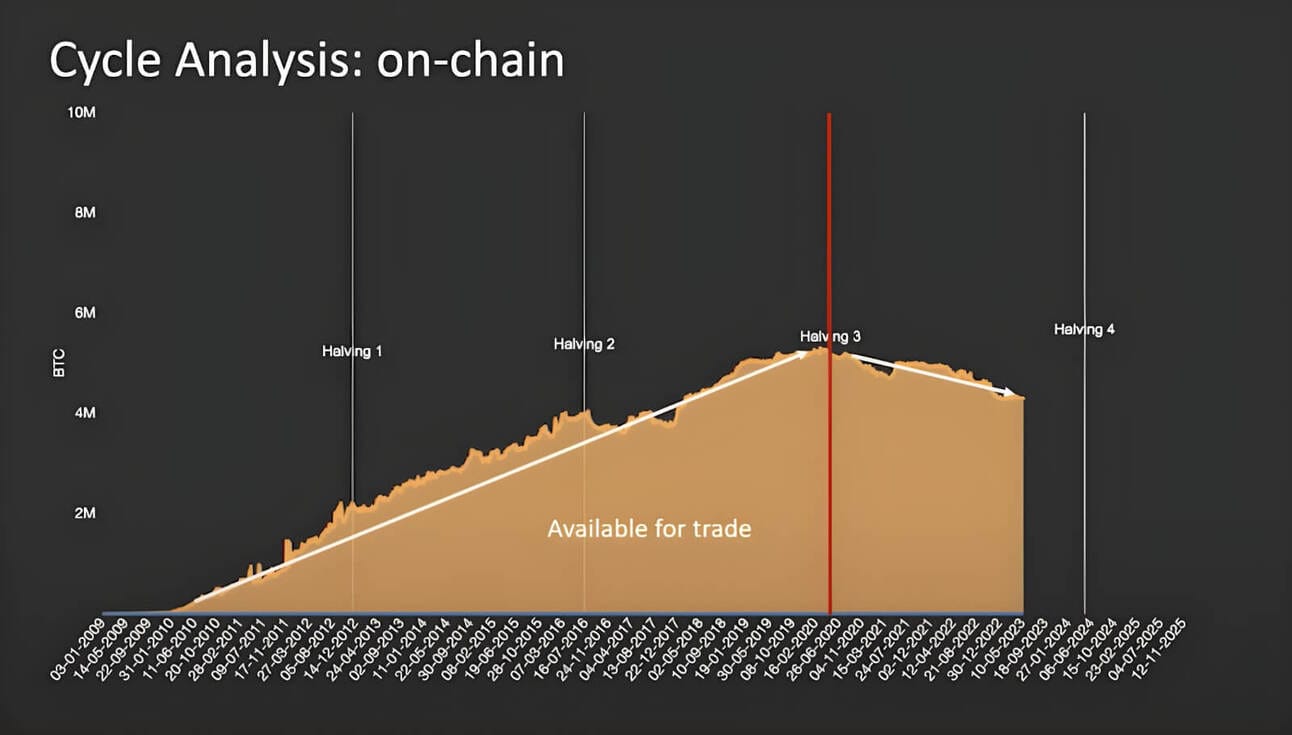 1. For the first time, the Bitcoin supply available for trade is decreasing heading into the halving.