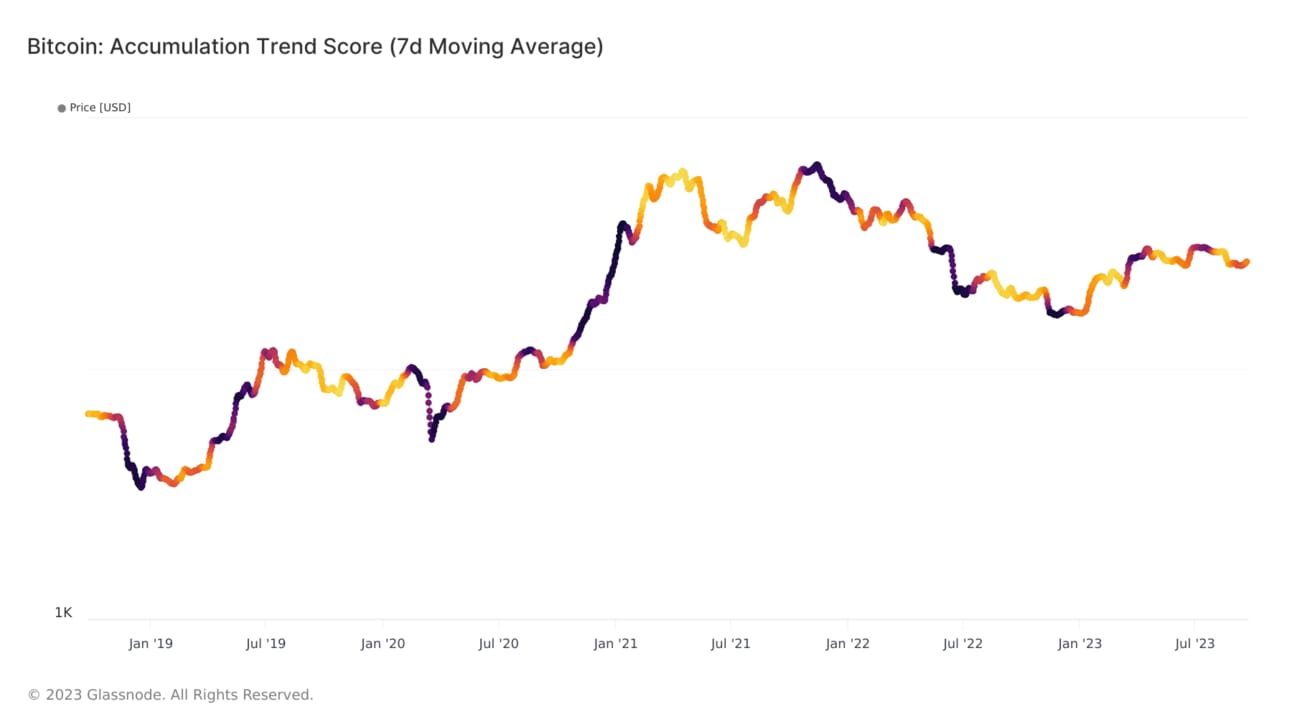 Bottom line: Right now we’re right in the middle of the accumulation trend score. This can only last so long as long-term, high conviction holders own more & more of the supply. ⏰