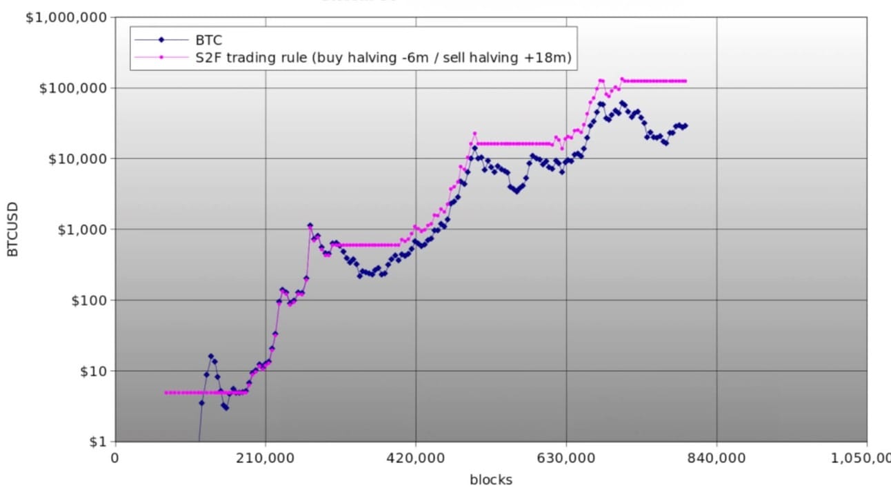 The mastermind behind the esteemed Stock2Flow Bitcoin valuation model, released a video covering this strategy which he's dubbed: S2F Trading Rule.