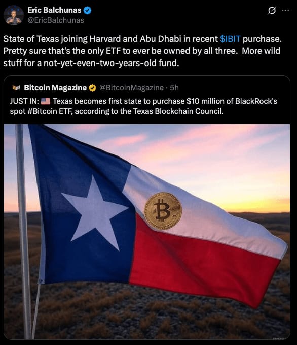 BREAKING: Texas Buys $5M in BTC ETF as States Edge Toward First Government Crypto Reserves