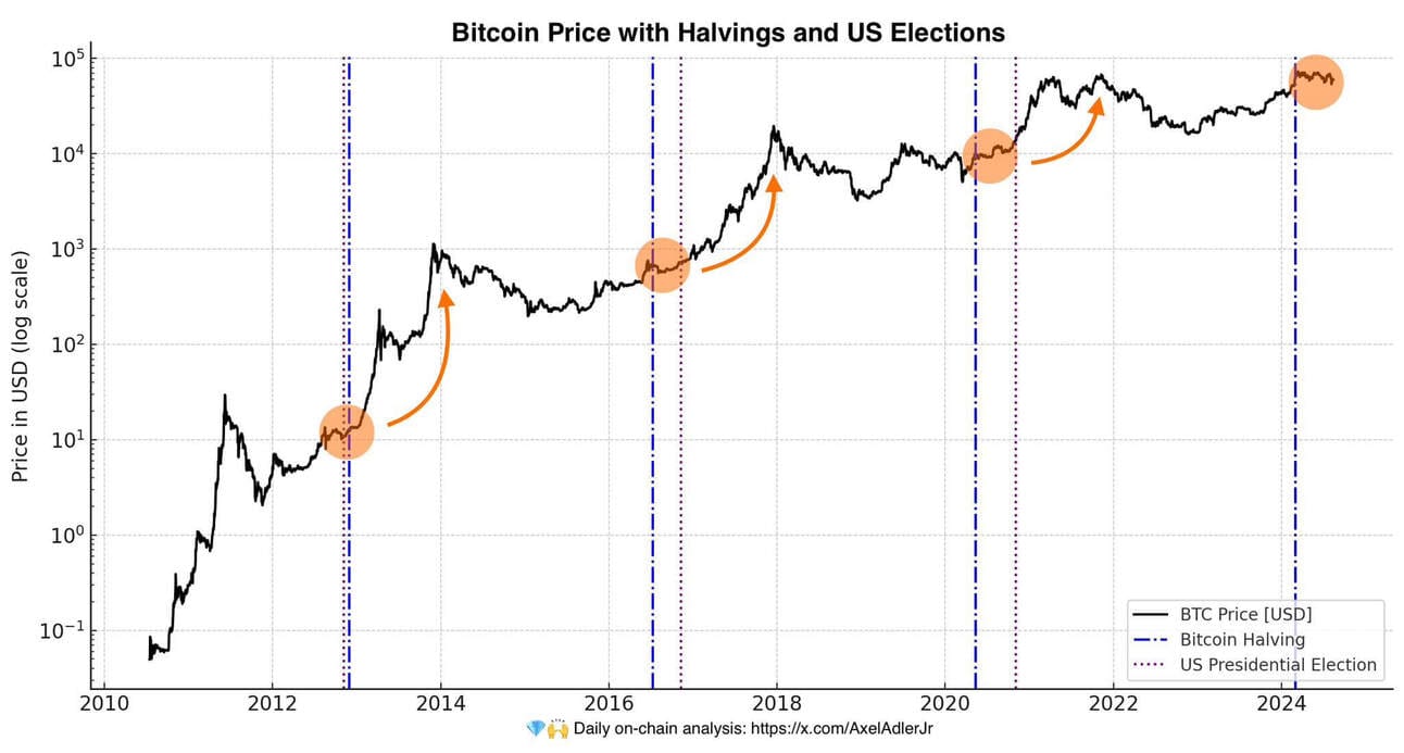 The orange circle highlights the period between the Bitcoin halving and US elections.