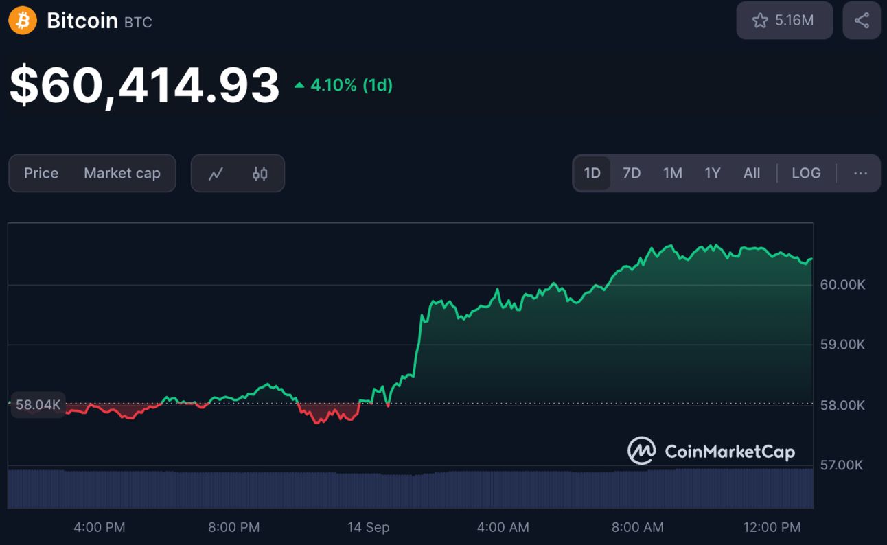 Bitcoin also shot up above $60,000 a couple of hours after Saylor broke this news.