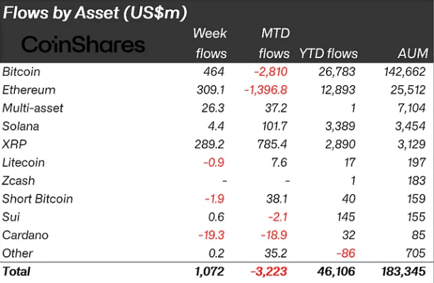 Whilst XRP saw its largest ever weekly inflow at $289.2 million.