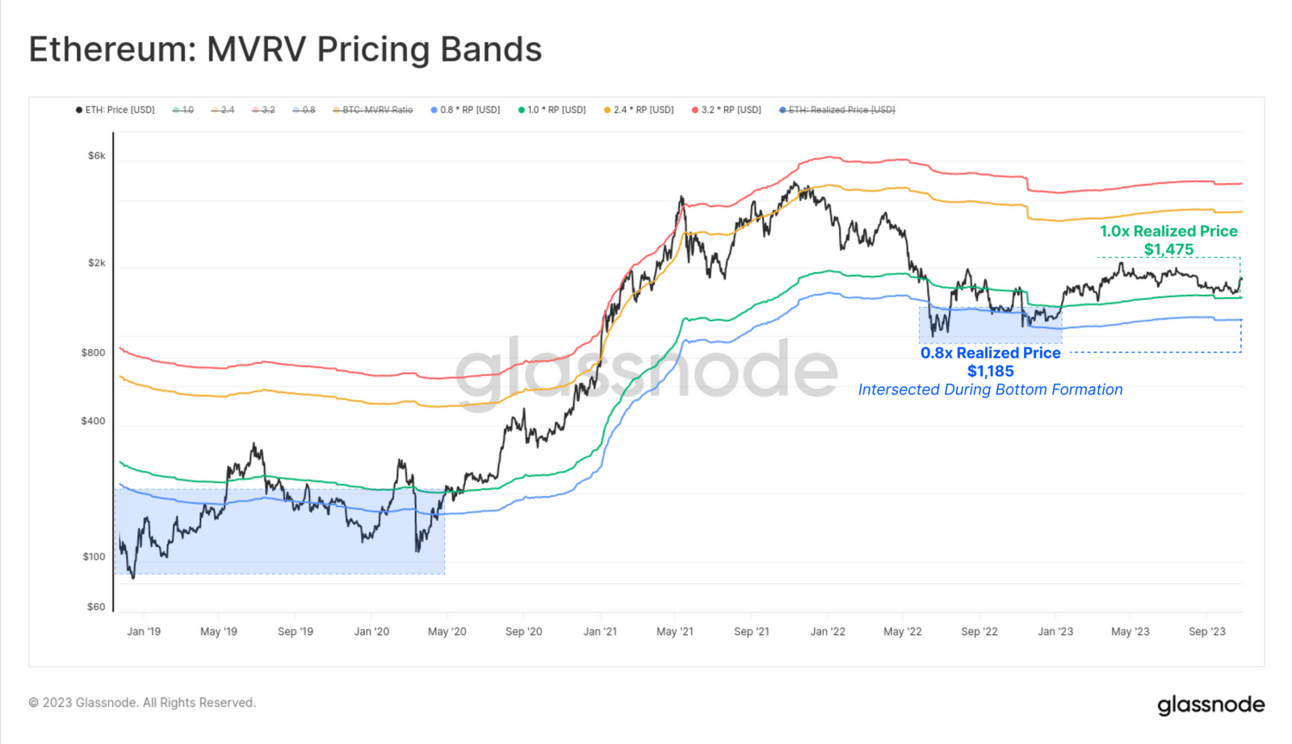 The start of 2023 saw ETH break through it’s realized price. This signaled a considerable shift in investor confidence. But it hasn't significantly blown past the realized price like in 2020 just yet.