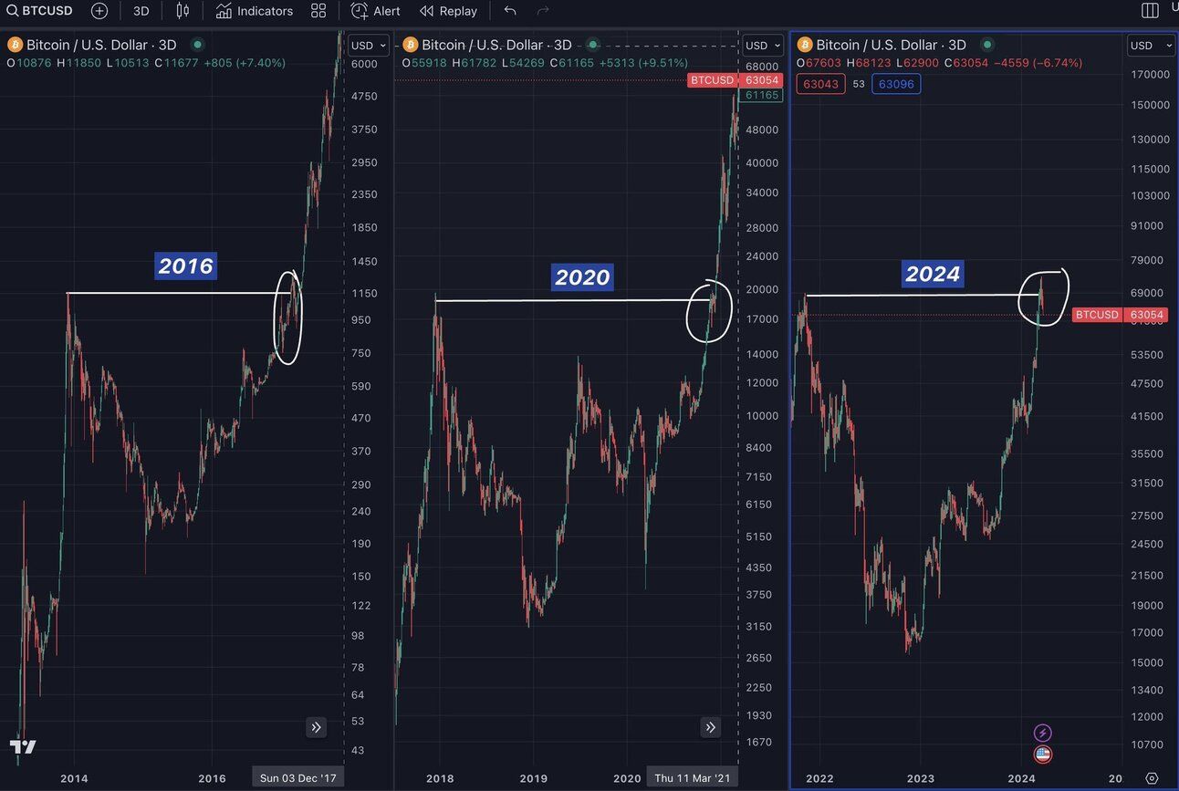 2. Price action of 2024 closely mirrors 2016 & 2020 cycles