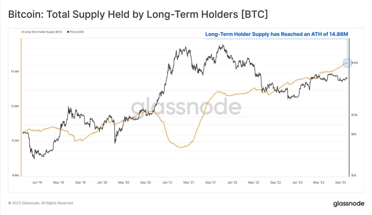 As of today 14.86 million Bitcoins have not moved in over 5 months. This is equal to 76.10% of the Bitcoin supply.