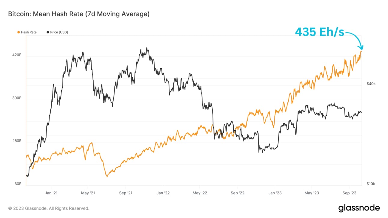 Taking a look at the chart above, the hash rate has been steadily increasing since July 2021. From 100 Eh/s all the way to 435 Eh/s as of today.